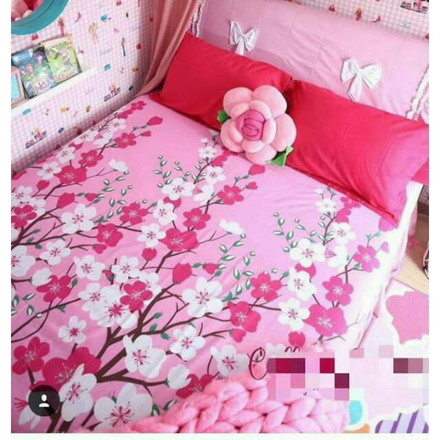 Sprei Cvc Motif Bunga Sakura Dream Pink Hitam - Source